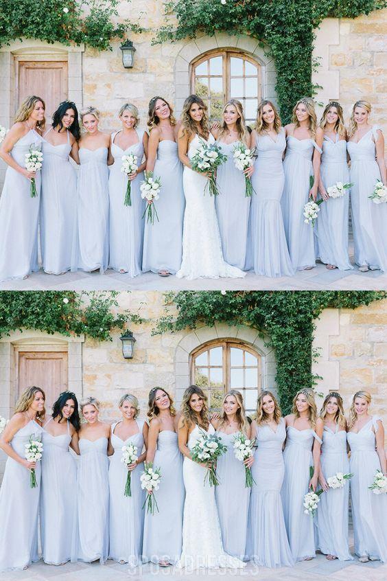Ακατάλληλο μπλε σιφόν μήκος δαπέδου φθηνά μακρά φορέματα παράνυμφων σε απευθείας σύνδεση, WG565