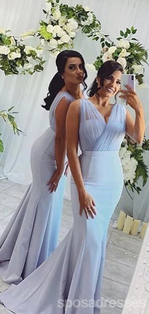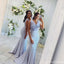 Blue Sexy Mermaid Sleeveless Long Bridesmaid Dresses Gown Online,WG1086