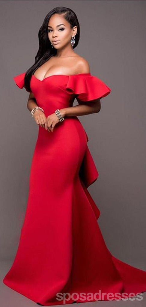 Red Mermaid Off The Shoulder Long Bridesmaid Dresses Online, WG926