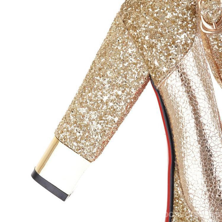 Fashion High Heels Round Pointed Toe Sequin Wedding Bridal Shoes, S035